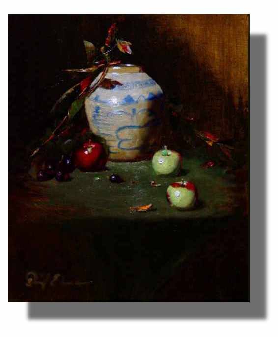 Interested in learning how to paint still lifes? Check out my 10 DVD starter still life course. In this course, you will learn to create backgrounds, learn how to translate instead of just copying what's in front of you, and easy to understand concepts you probably haven't heard before.